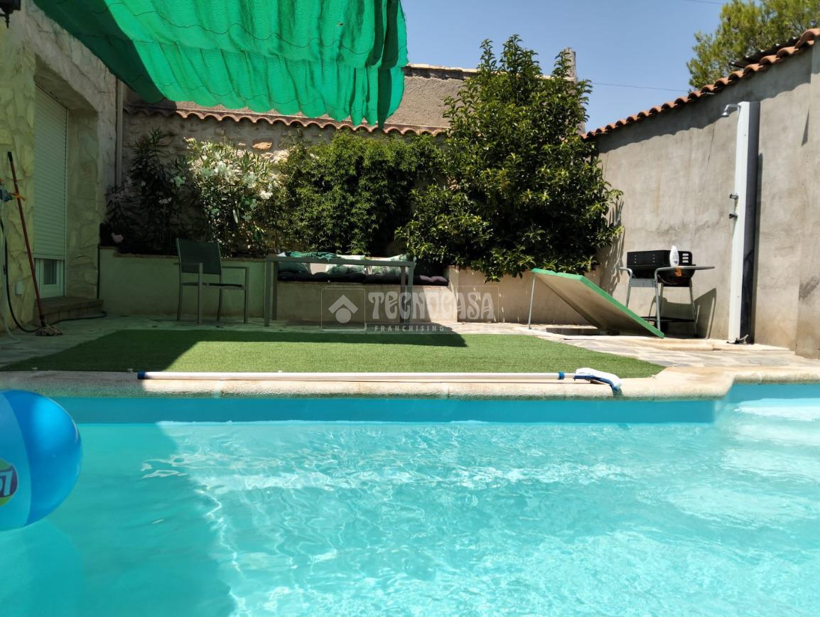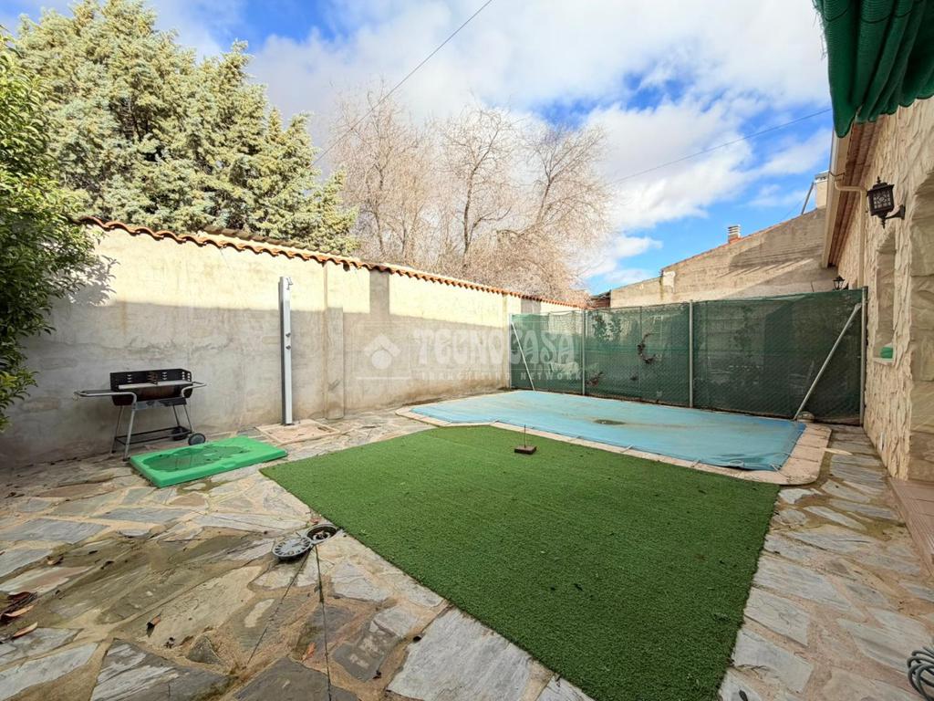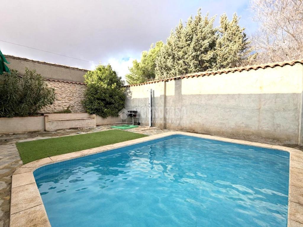 En la PLANTA BAJA encontraremos: recibidor, amplio y luminoso salón-comedor con acceso directo al patio trasero con piscina de obra, amplia cocina totalmente equipada con ventanal con acceso al patio, un aseo de cortesía, 3 habitaciones con armarios empotrados, un baño completo con ducha y garaje.