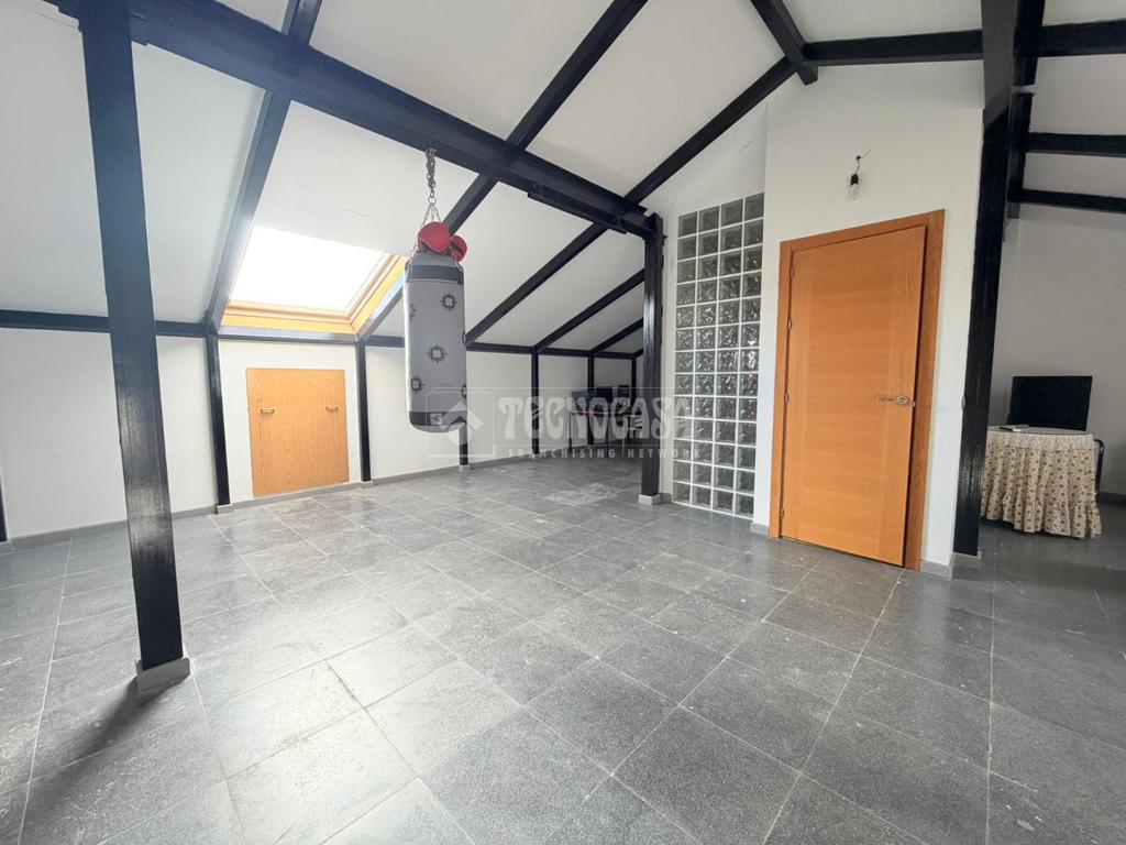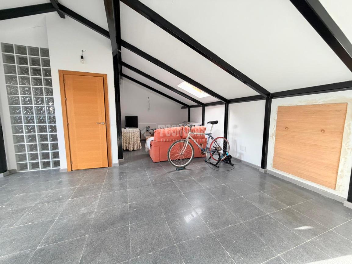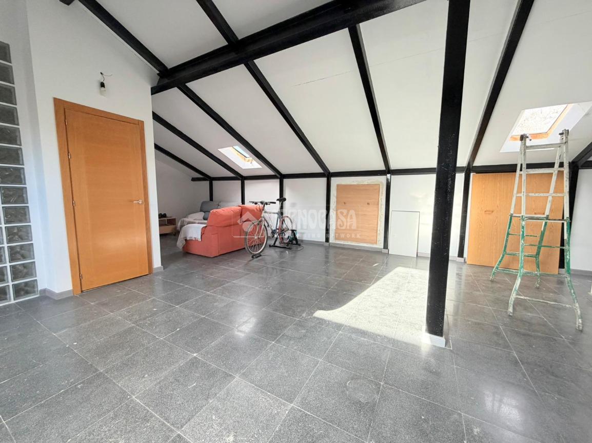 Desde el hall, accedemos a la PRIMERA PLANTA, encontraremos una amplia BUHARDILLA diáfana, muy luminosa, con ventana Velux, ideal como zona de ocio, despacho o dormitorio adicional y un baño completo reformado con ducha.