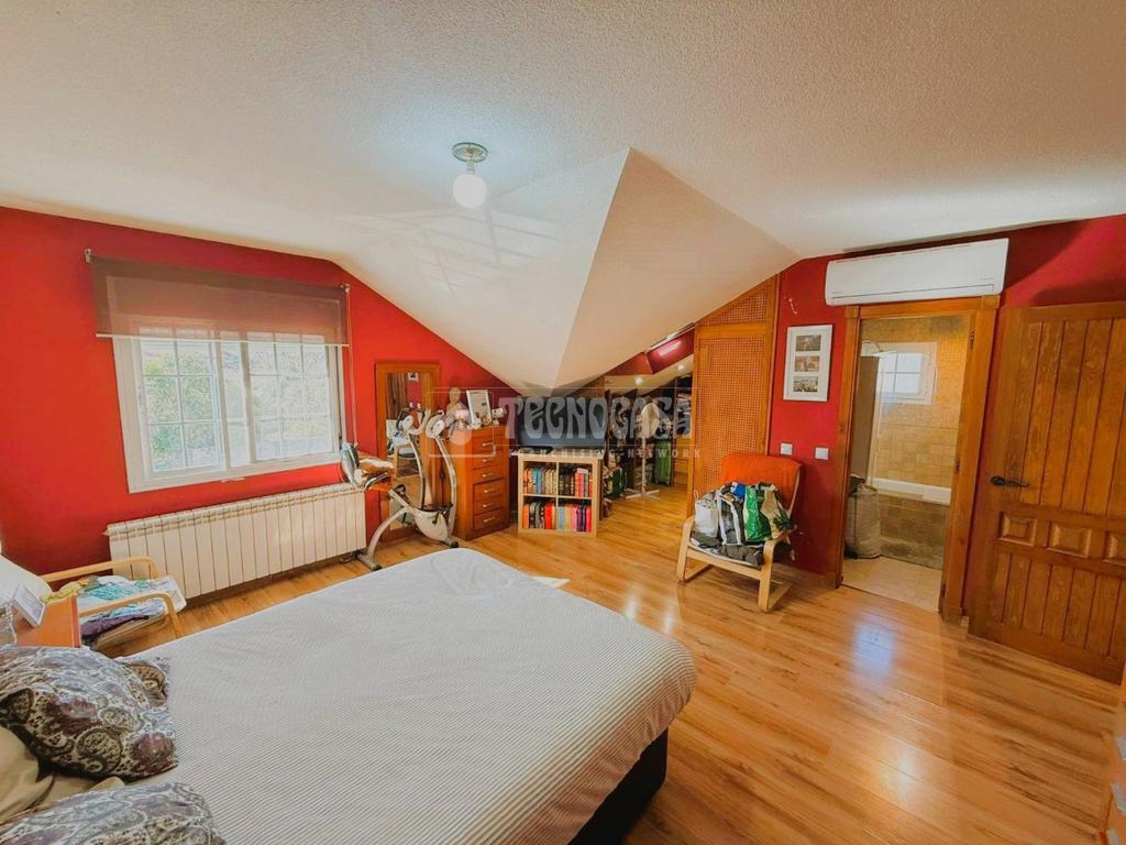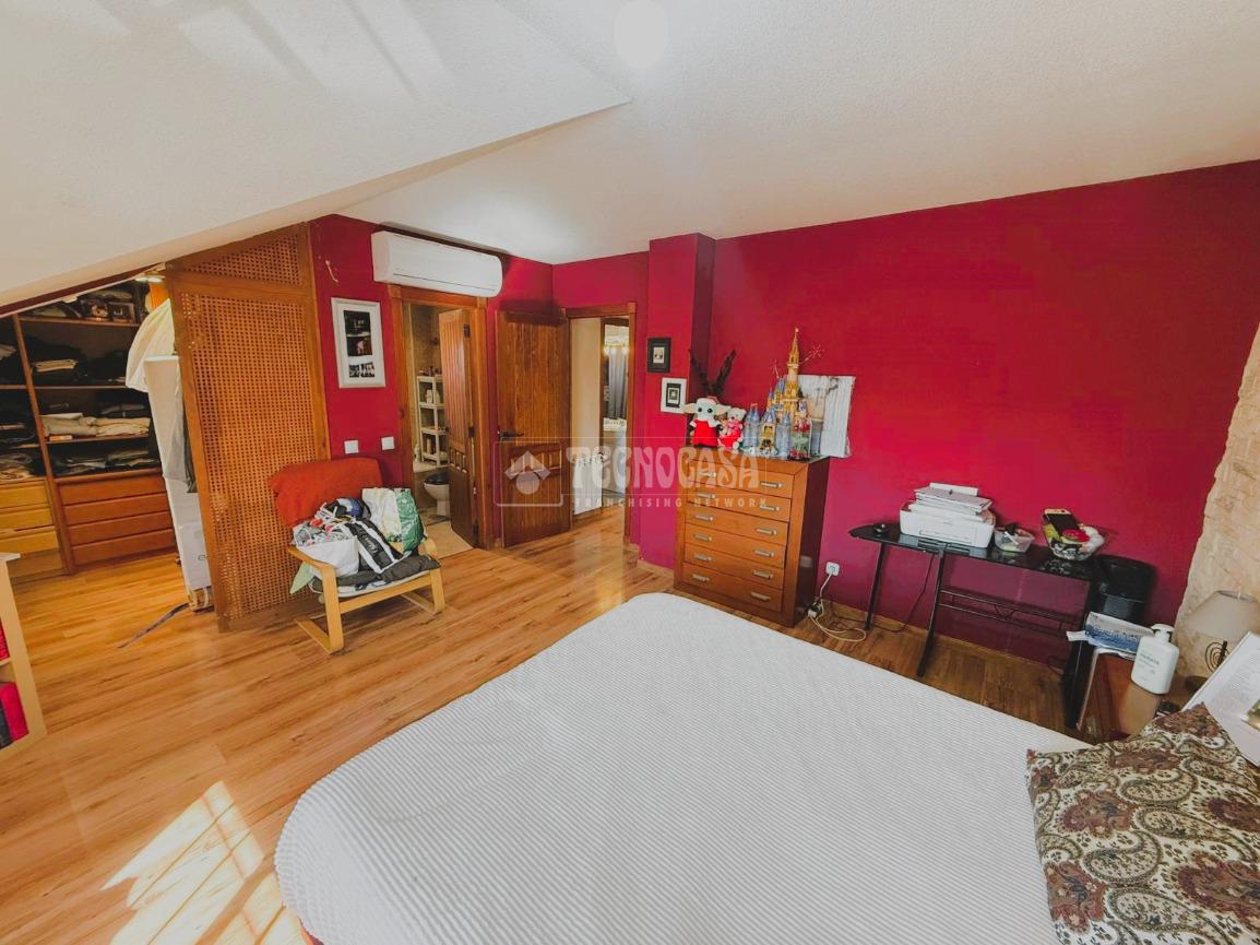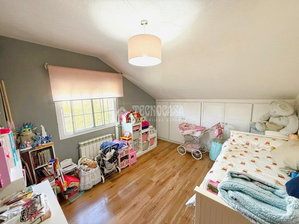 Desde el hall accedemos a la PRIMERA PLANTA: Consta de 3 dormitorios, el dormitorio principal cuenta con aire acondicionado frío/calor, con vestidor y baño con bañera en suite; los otros 2 dormitorios cuentan con armarios empotrados, y uno de ellos con ventana velux. Cuenta con otro baño completo con bañera de uso común.