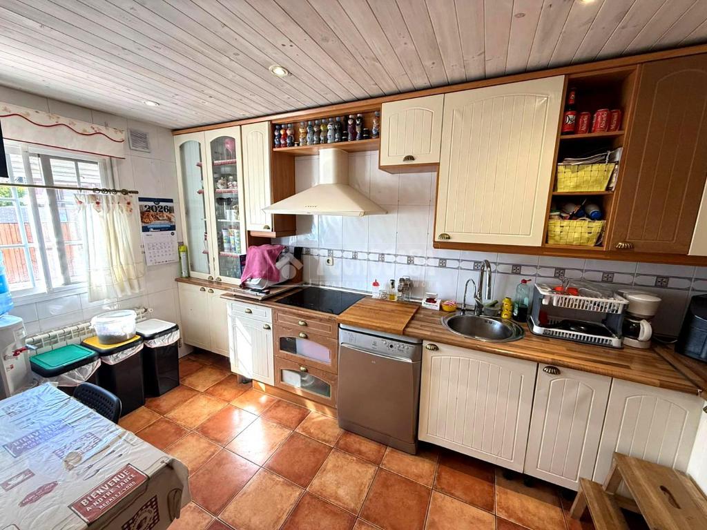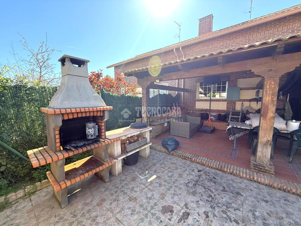 La PLANTA BAJA está distribuida en recibidor, luminoso y amplio salón-comedor con ventanal con acceso a un esplendido y acogedor patio con porche de madera y techo de tejas, zona de bbq de obra y amplio jardin. Cocina independiente totalmente equipada, un baño completo y garaje.
